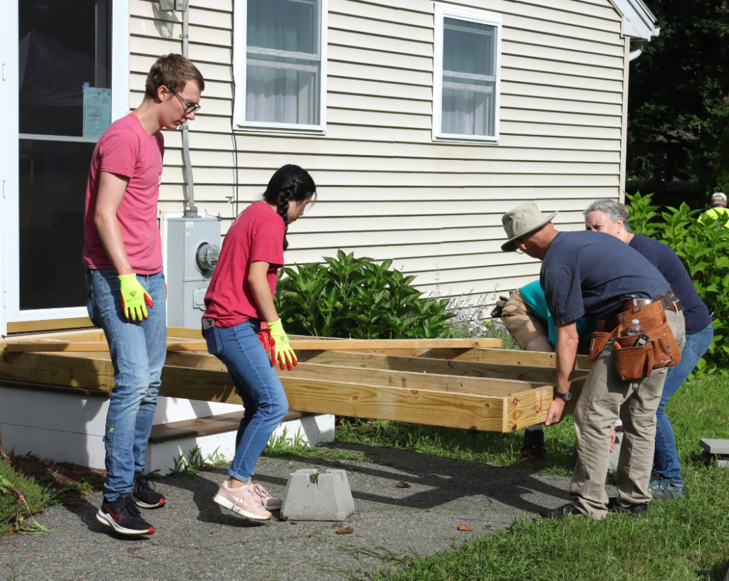 Ramps for Neighbors (RfN) is a joint ministry of All Saints Episcopal Church and Central Congregational Church in Chelmsford, Massachusetts. Through this program we build ramps at peoples houses for folks who have become wheelchair-bound and cannot access their homes. In consultation with the homeowner, RfN designs the ramp, gets the building permit, purchases the materials, and builds the ramp. This is done at no cost to the homeowner.