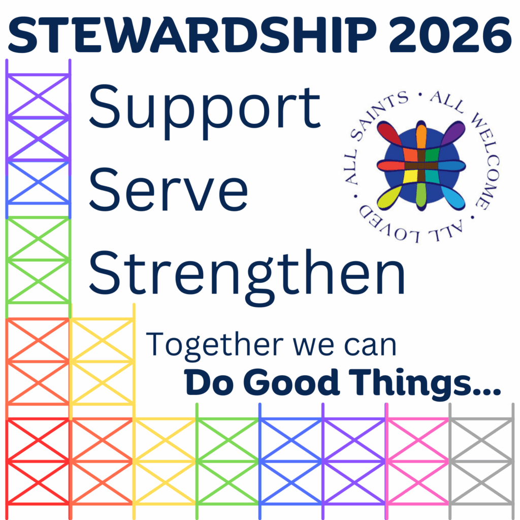 The ministries of All Saints’ are supported by the generous offerings of our parishioners: Worship, Pastoral Care, Fellowship, Outreach, and Education.